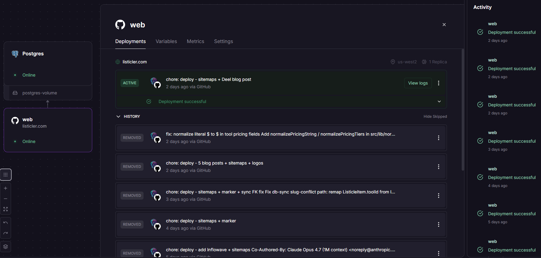 /lst:deployon my end ;) - I never SSH into anything. I never write SQL. I never touch the live site. I talk to Claude in my terminal, and Listicler updates itself. You must admit - this is pretty cool :]
