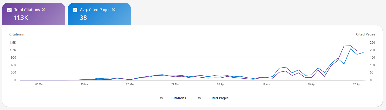 Then I checked the "AI Performance" section of Bing Webmaster Tools.